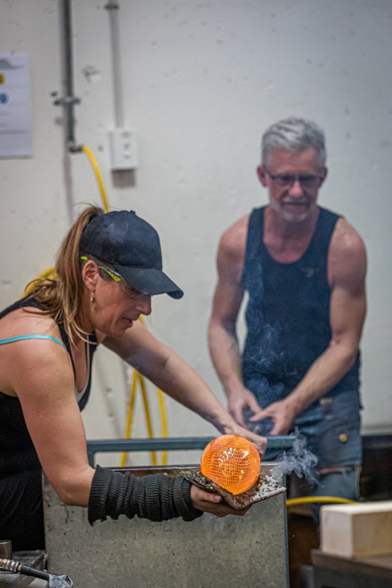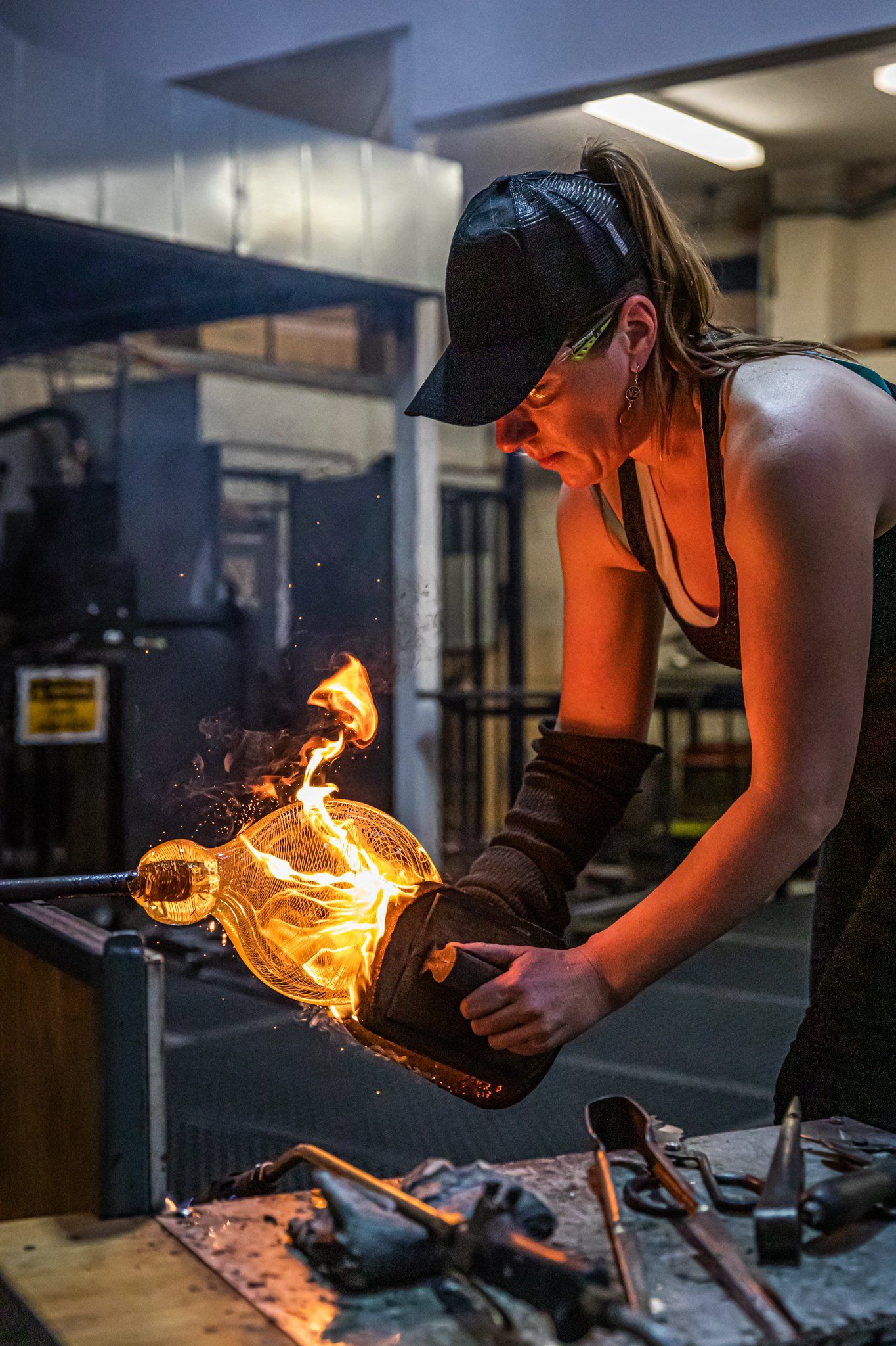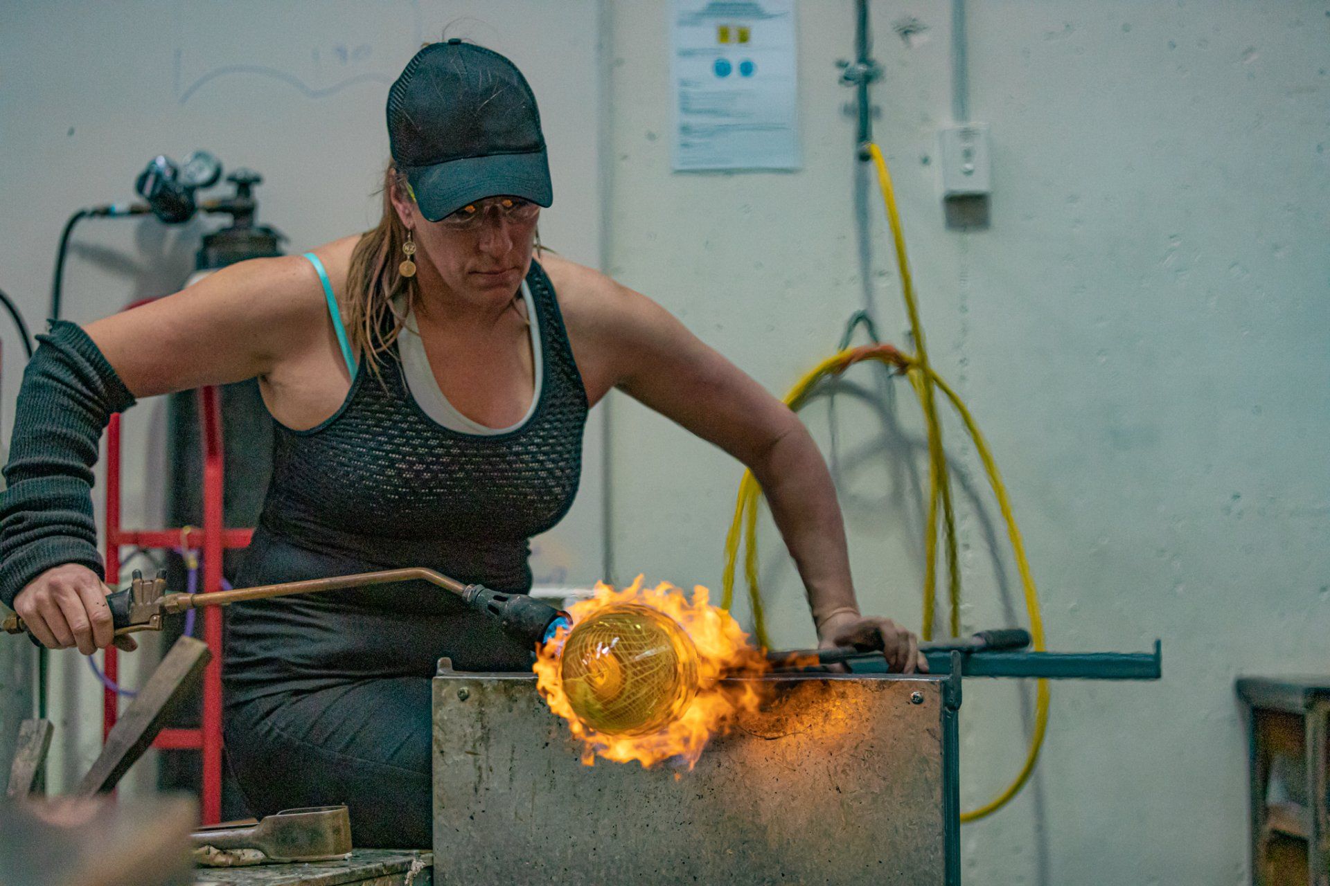 Katie Brown is an internationally renowned glass blower located in Whanganui, New Zealand. She is famous for her artistic talent and unique glass and lighting.