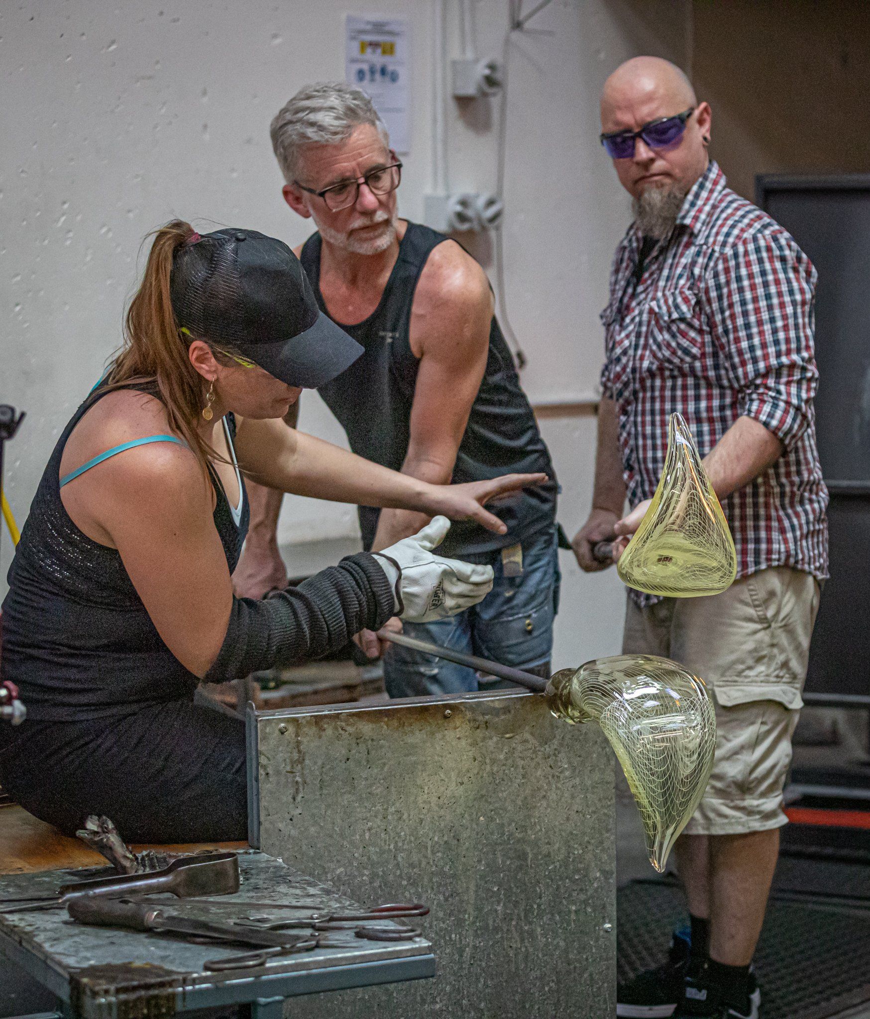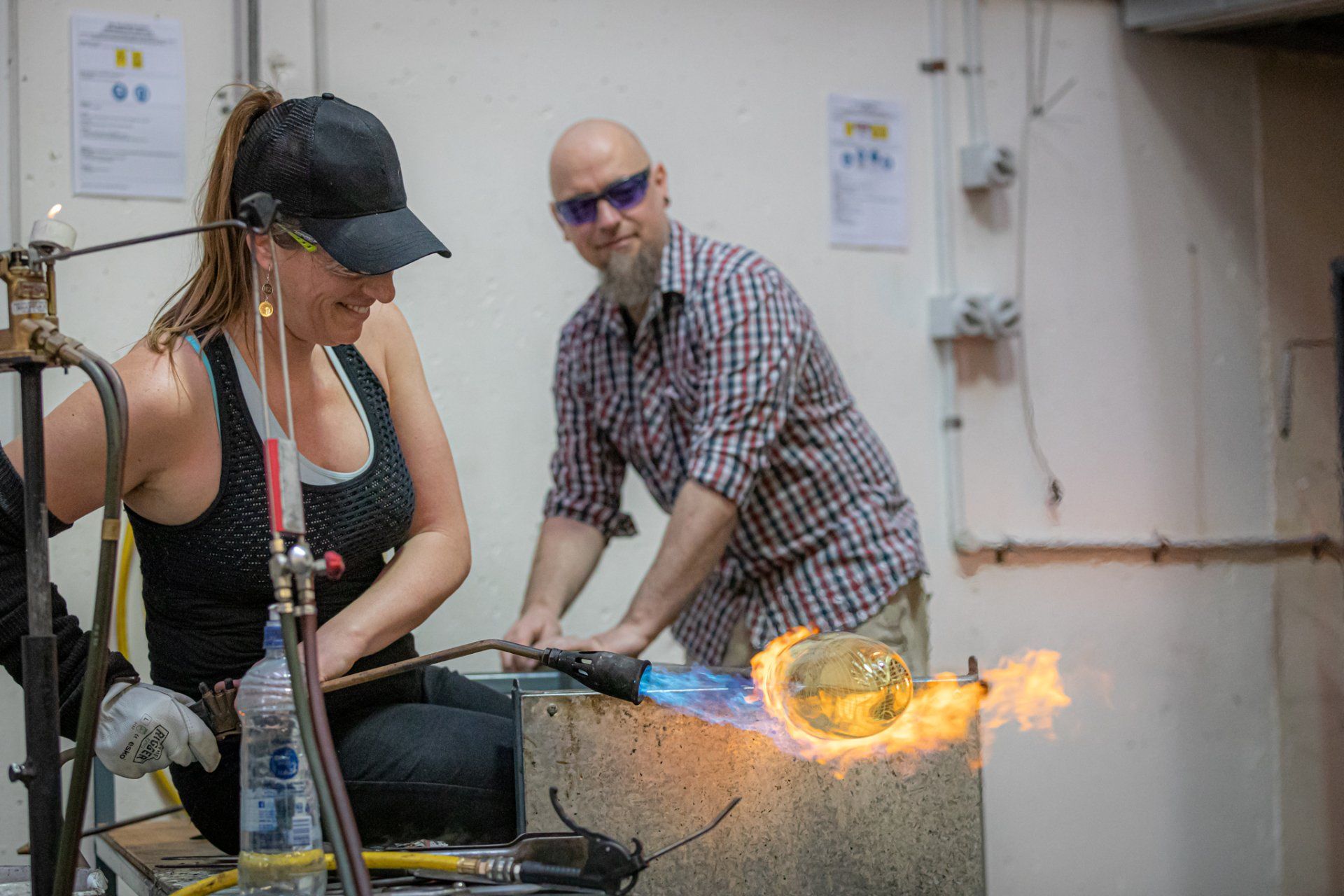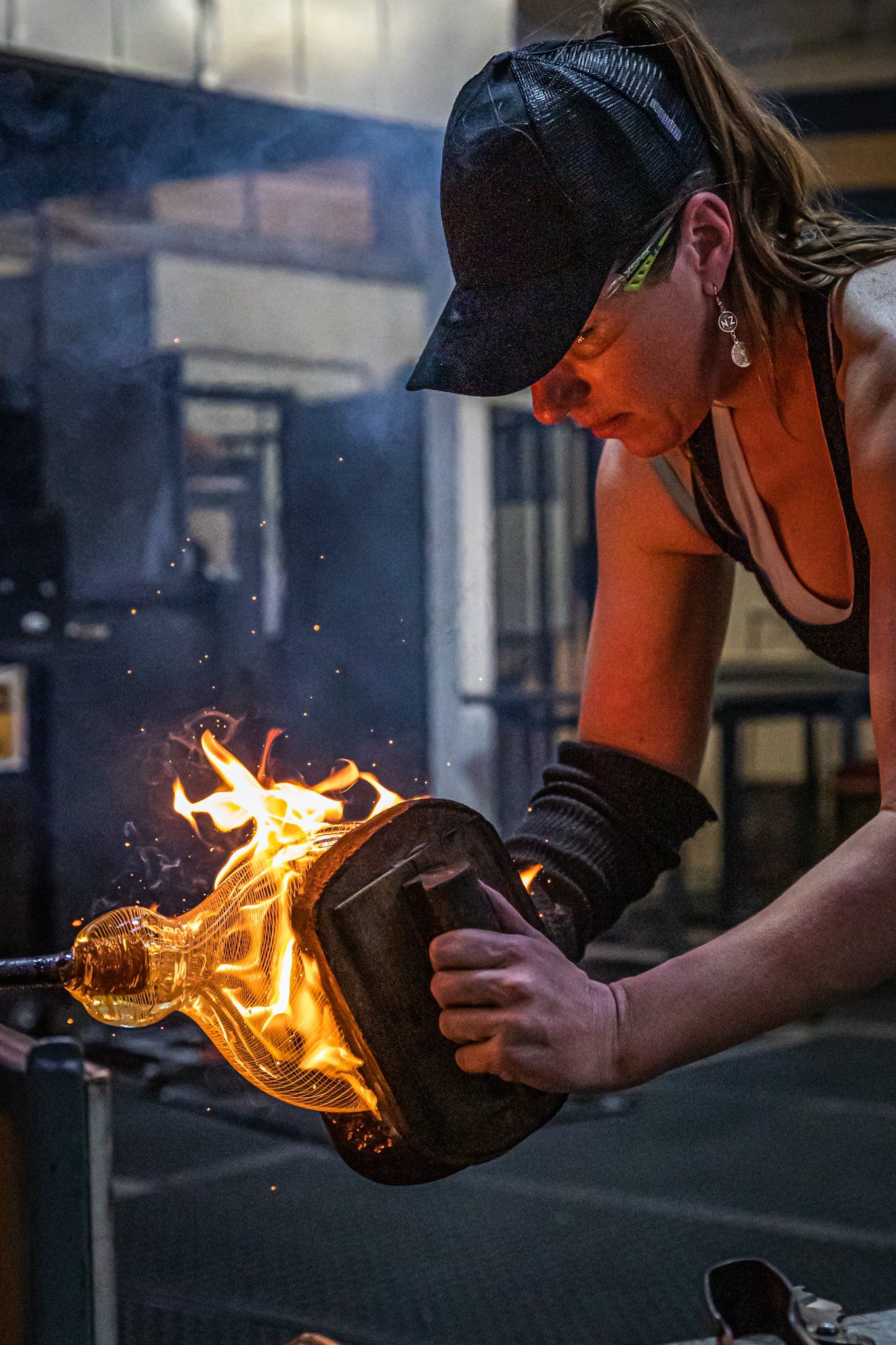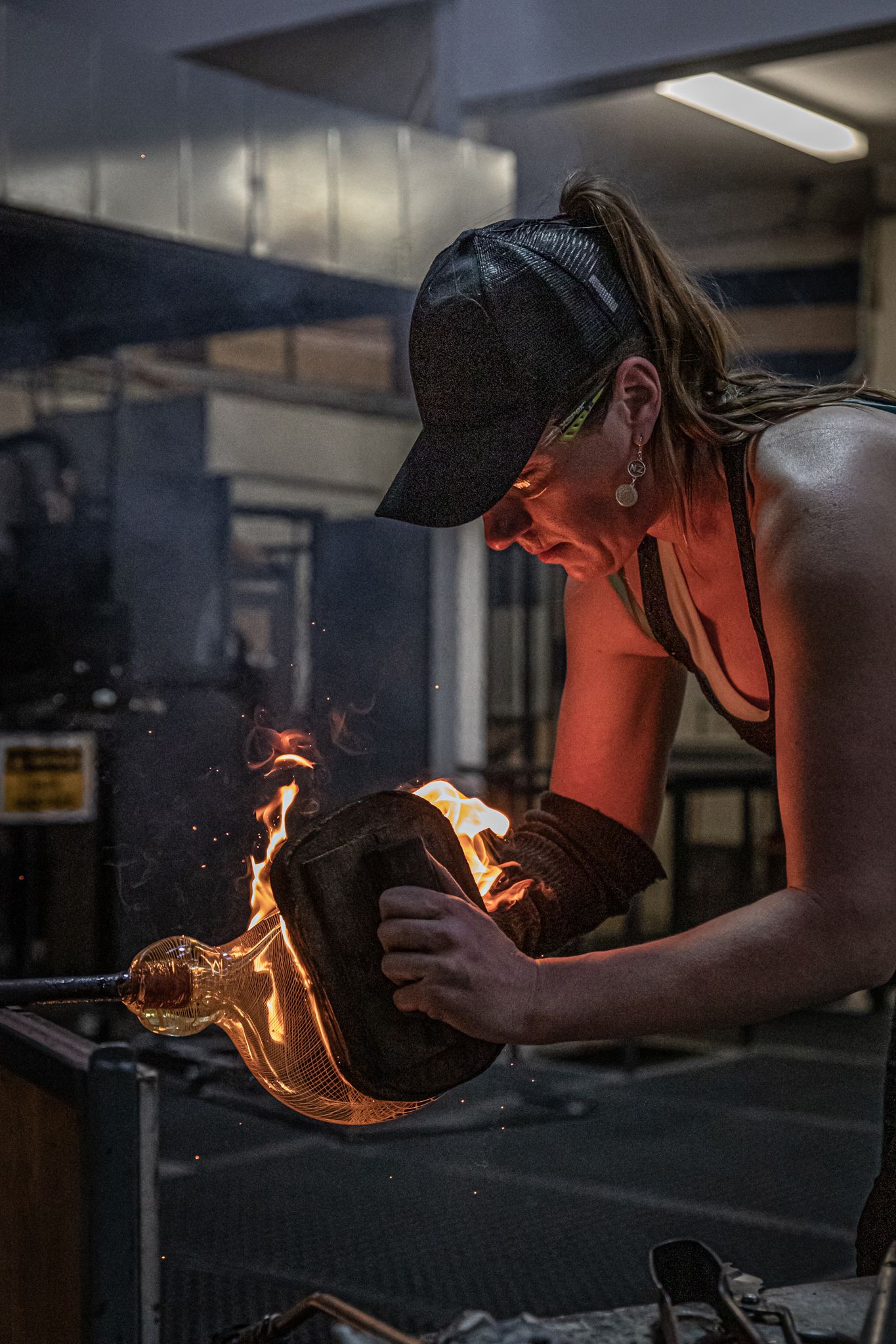 Katie Brown is an internationally renowned glass blower located in Whanganui, New Zealand. She is famous for her artistic talent and unique glass and lighting.