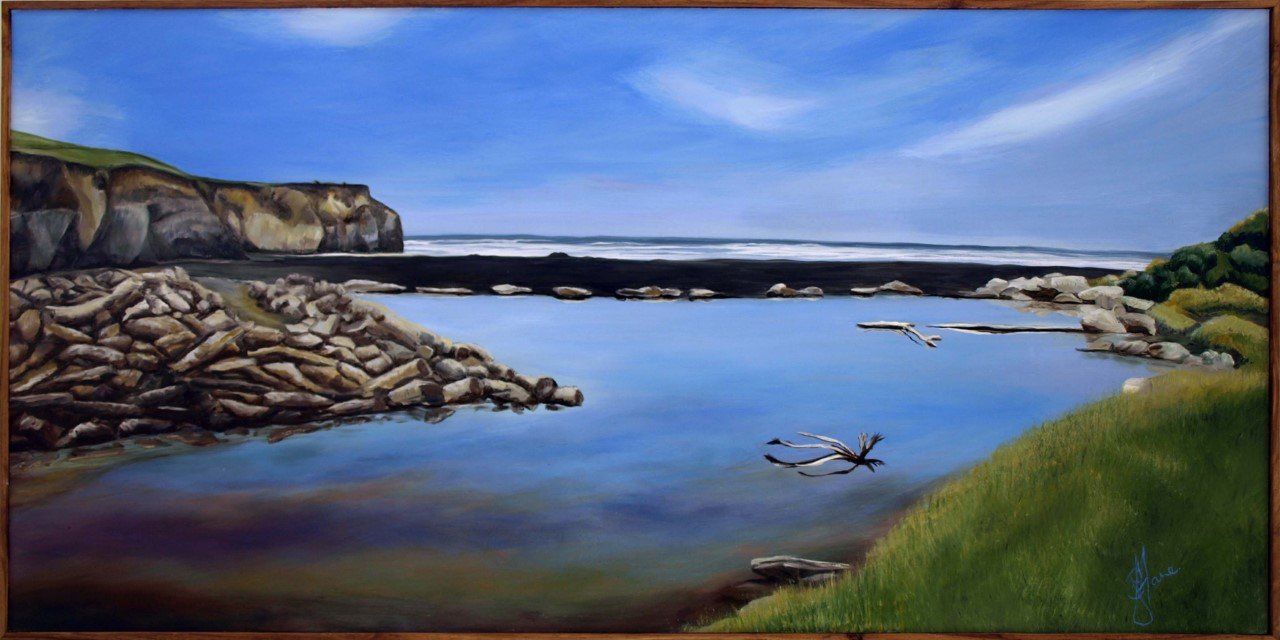 Jilly enjoys colour, balance and sculptural form in the landscape. Black Sand Studio was her pevious Gallery on State Highway 3 at Maxwell where she painted and exhibited with 170 supporting artists in her beautiful exhibiting space. A very popular place to stop.
